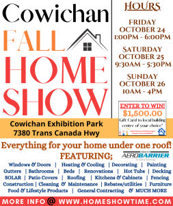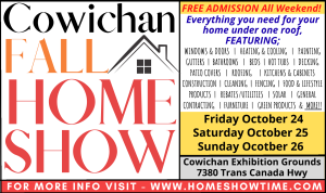The weekend of October 24-26 marks the 31st Anniversary of the Cowichan Valley Fall Home Show. The Cowichan Valley’s #1 event for your house & home; Connect with experts in home improvements, renovations, décor, design, and so much more. You’ll find the products, services, show specials and samples you need to make your projects come to life!