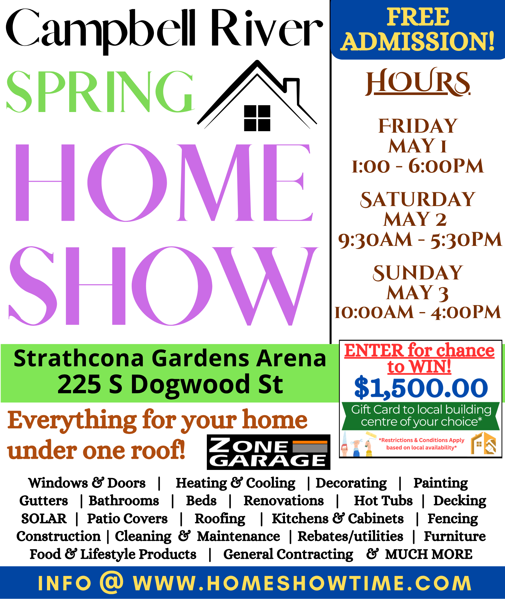 The Campbell River Home Show is back @ Strathcona Gardens, May 2026! Campbell River’s ultimate one-stop shop for home improvement and building products, services, samples and advice in one convenient location! The show also features products and services to help you live and support your lifestyle. Be sure to take advantage of special pricing and prizes on offer by exhibitors all weekend long!