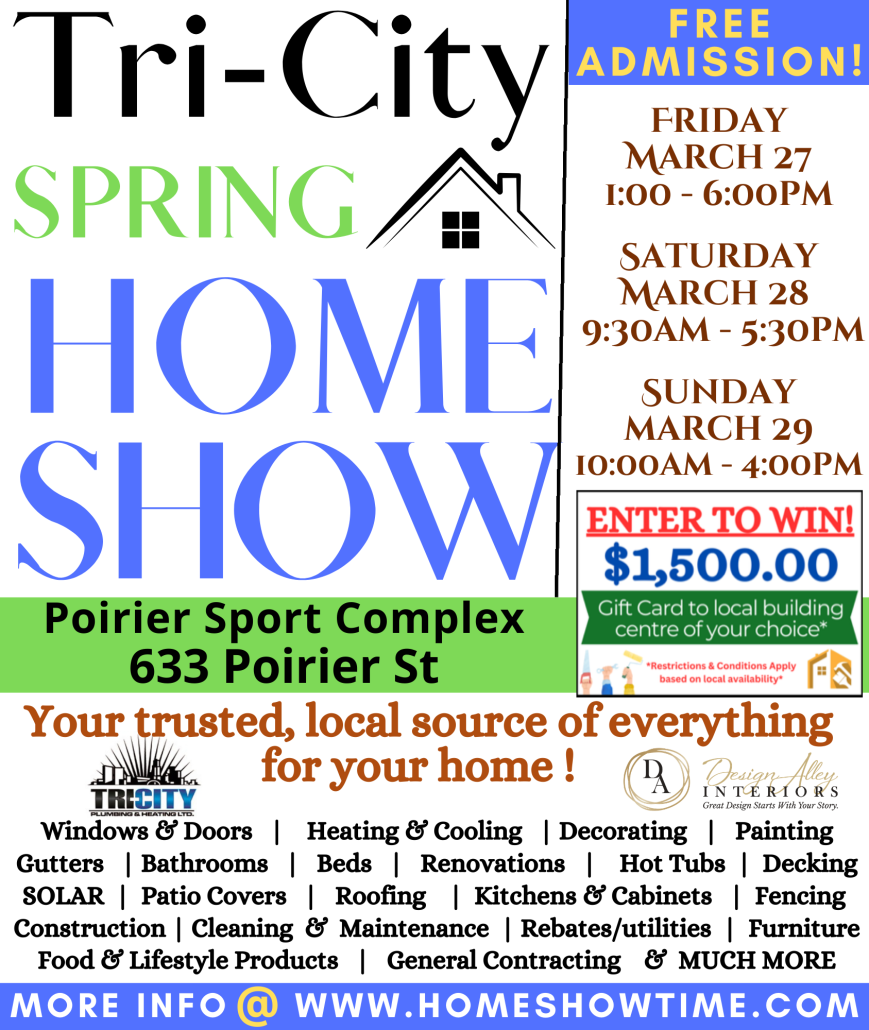 The Tri-City Home Show is back @ the Poirier Sports & Leisure Complex, March 2026! The Tri-City’s #1 trusted, local resource for home improvement and building products, services, samples, specials and advice in one convenient location, over one action-packed weekend!